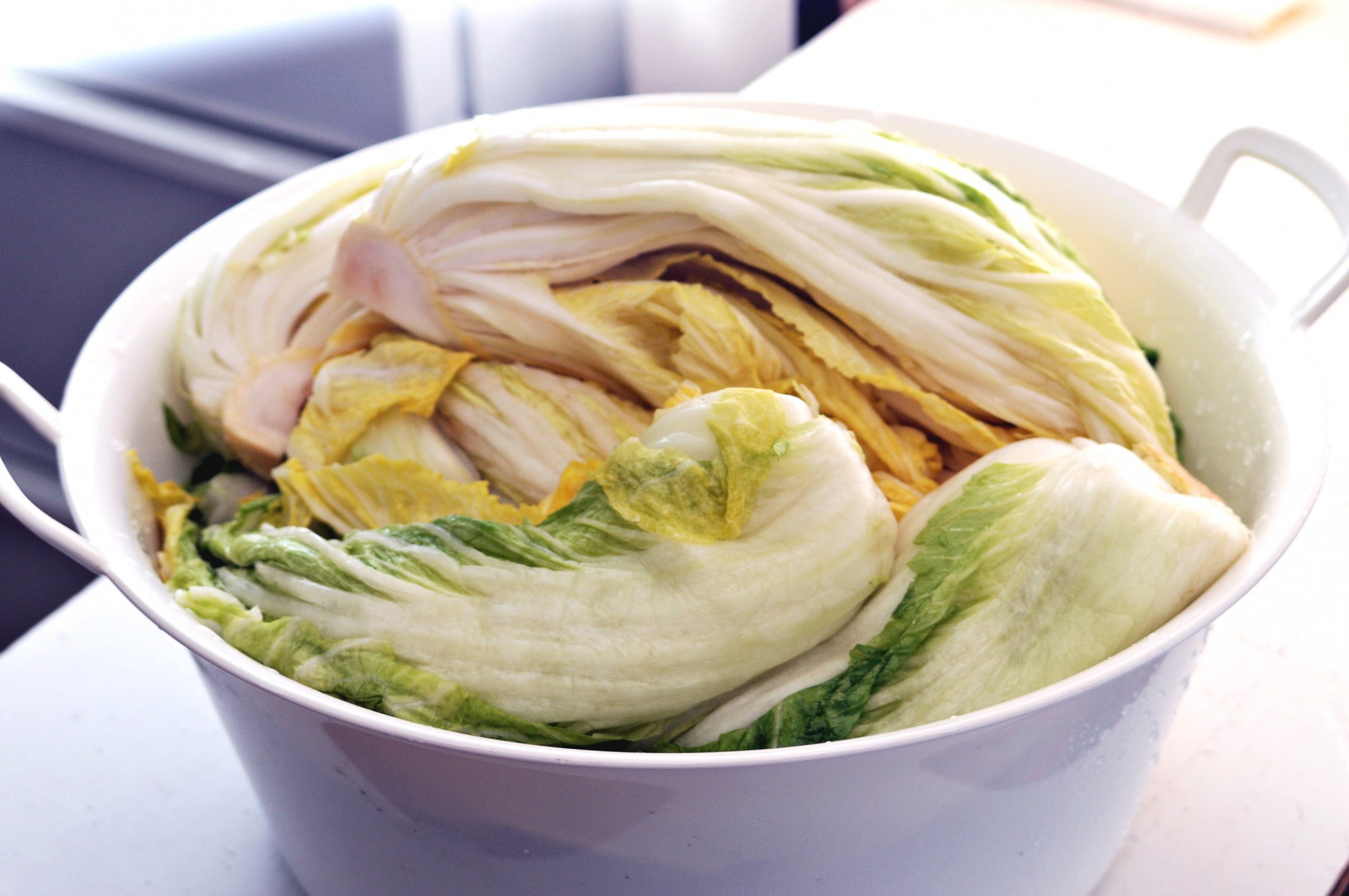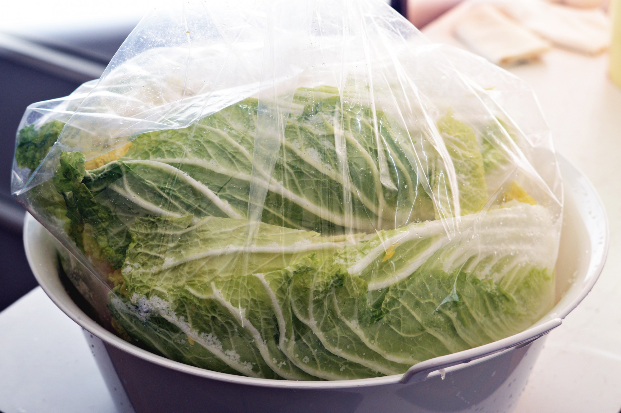 ①白菜を塩漬けにする