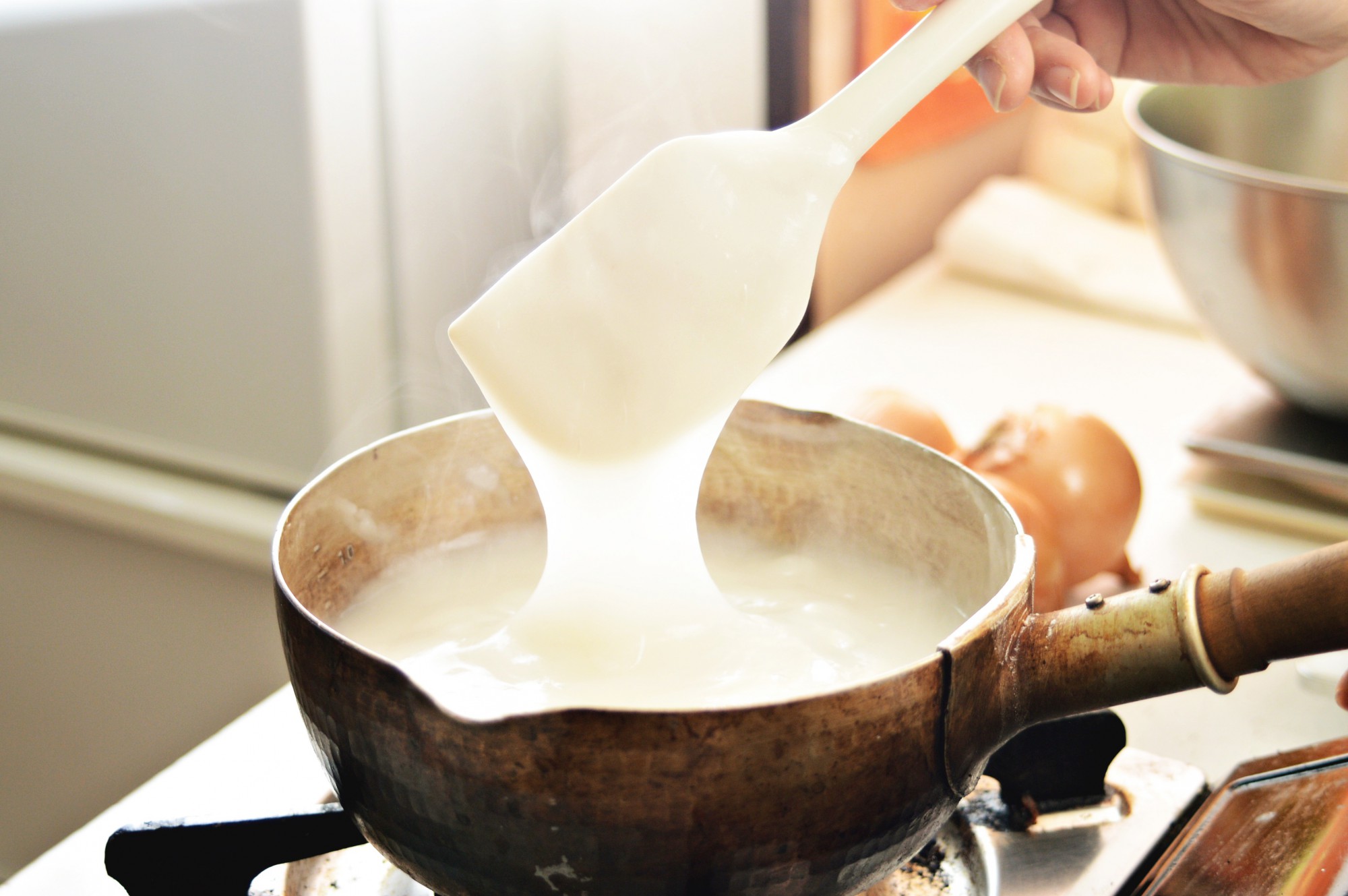 キムチのりは、白玉粉と水を合わせてとろとろになるまで加熱したものです。ヤンニョムと合わせることでキムチの素が白菜に絡みやすくなるほか、キムチの発酵を促す効果があります。