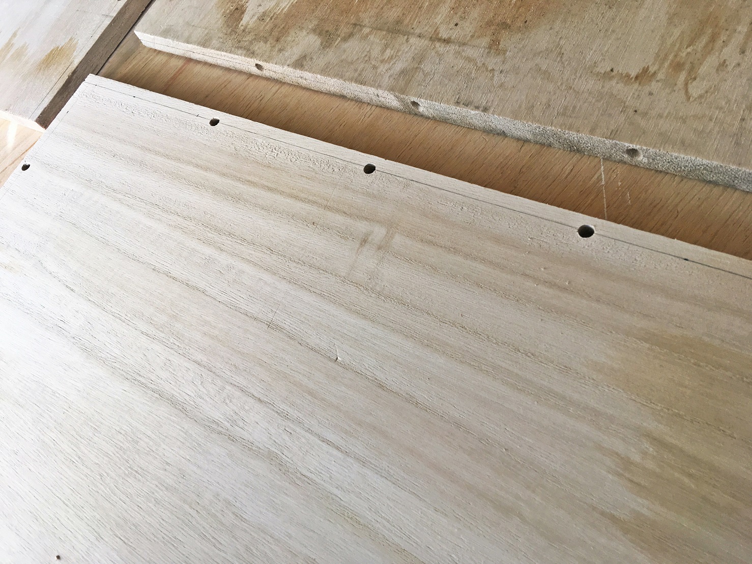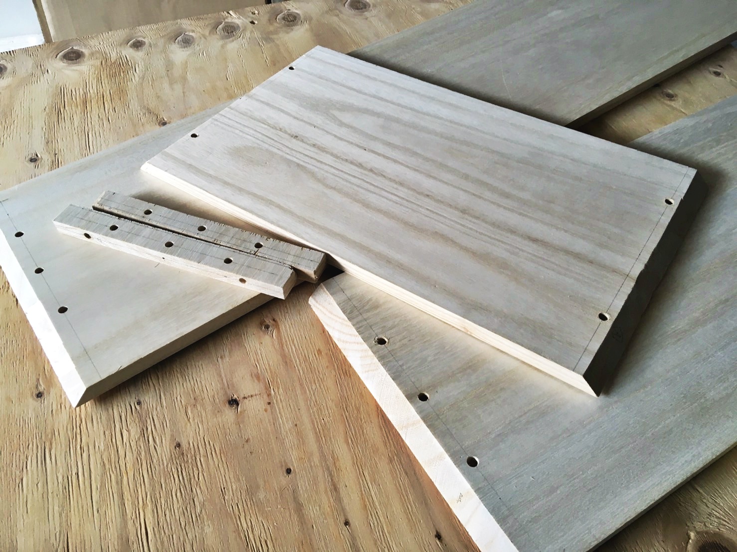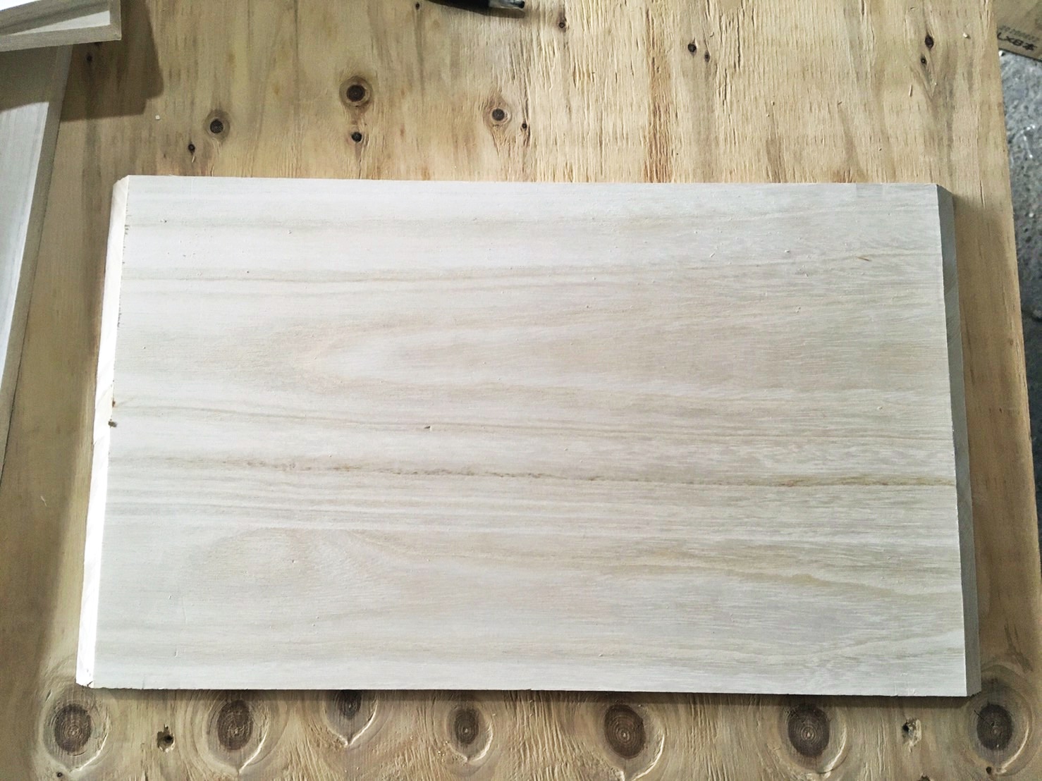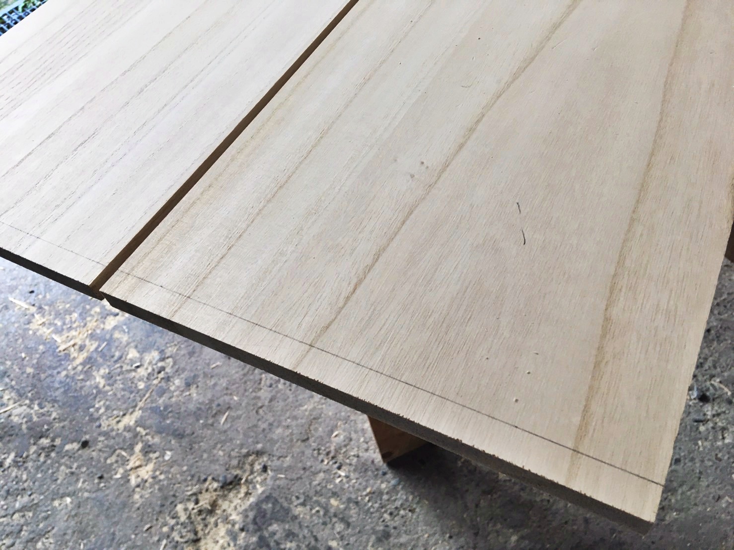 こちらが天板と底板に使う板材です。サイズはどちらも426mm(横)×243mm(縦)×13mm(厚さ)です。