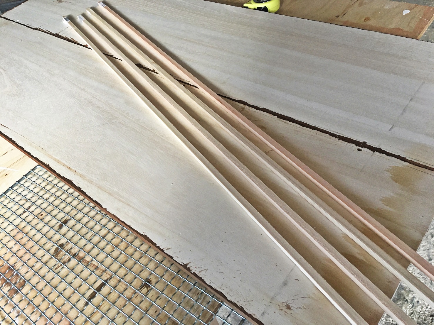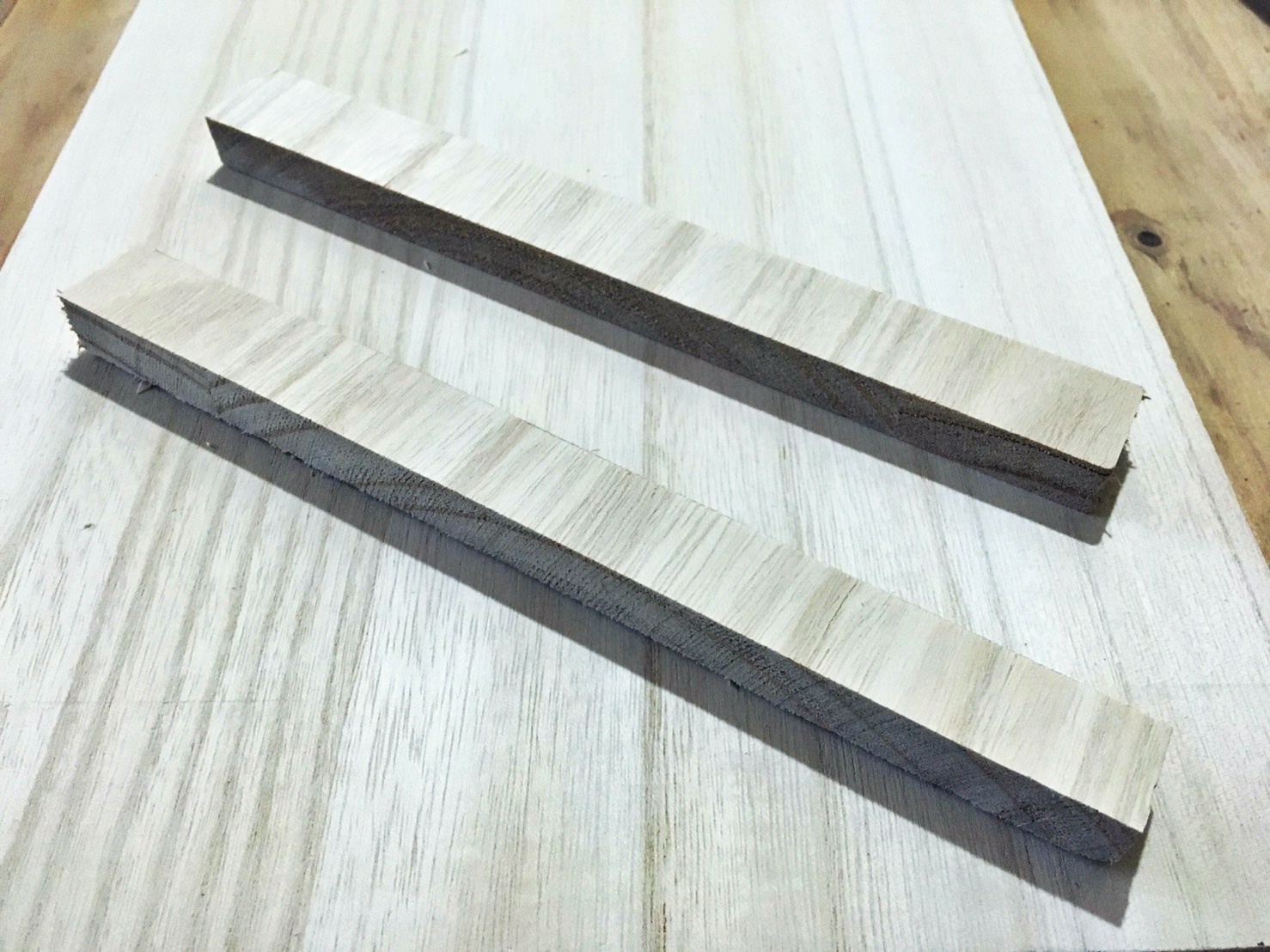 さて、250×30×15のサイズの補助材を2本使いますが、ここは適当な端材から切り出して使ってもかまいません。それほど精度が求められる部位ではないので、ざっと切り出します。