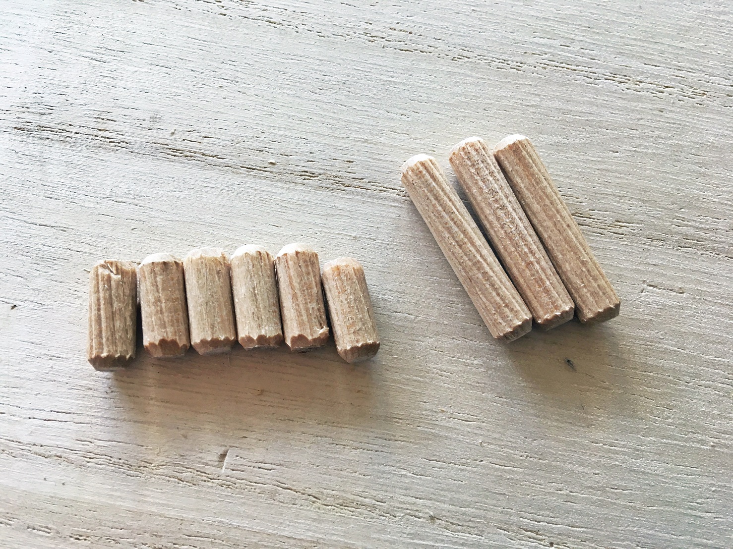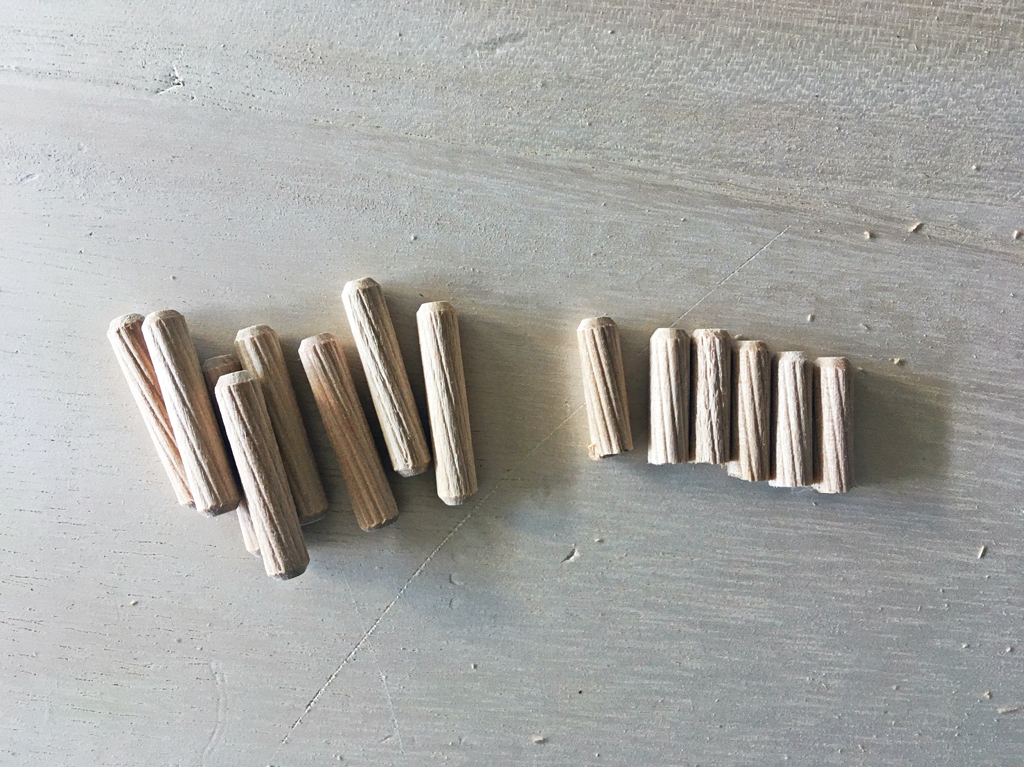 左が完成したお手製のダボです。右が加工前のものです。使用する数のダボを用意したら次の工程に進みましょう。