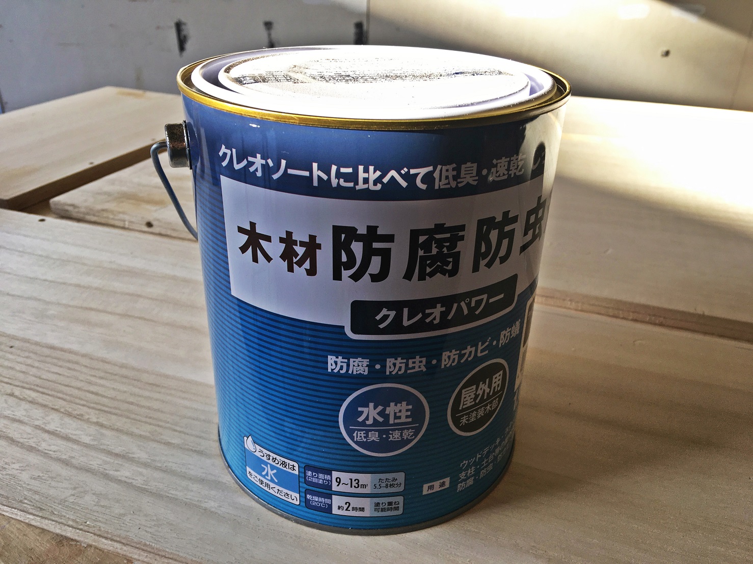外側は湿気などによるカビが怖いので、今回は防腐剤が含まれた塗料を塗り、その上から軽くラッカースプレーを吹きました。