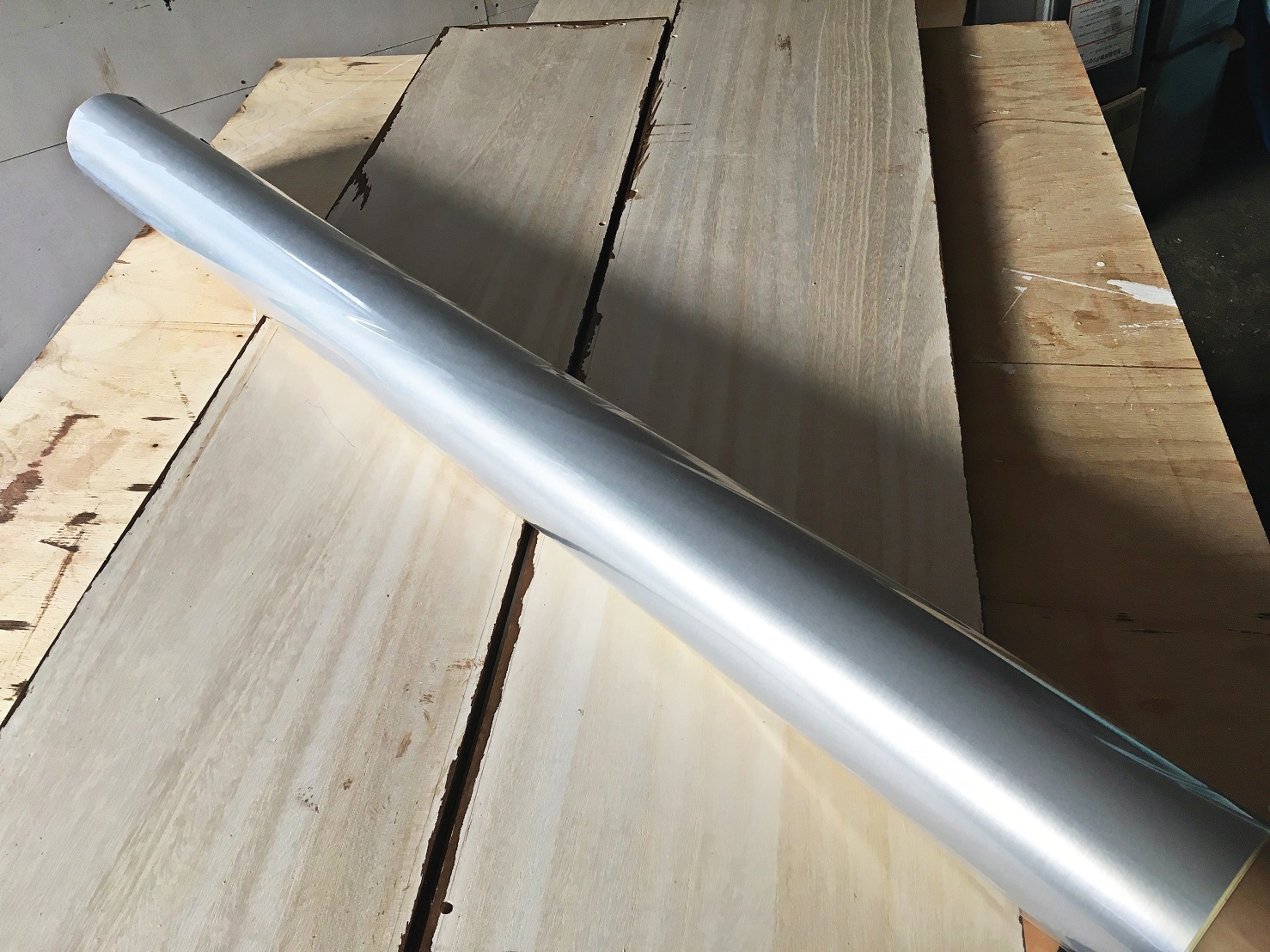 ステンレスシートはこのようにロール状になっています。燻製器に設置したスモークチップなどが万が一にも側板に引火しないようにとの予防措置です。