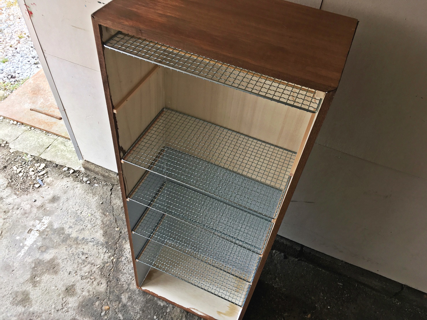 実は、食材をぶらさげるための木の棒を設置するのを忘れていました。今回は本体を組み立ててから何とか棒を差し込むための穴を開けて事なきを得ましたが、実はこの棒は必要なかったことが発覚(笑)。