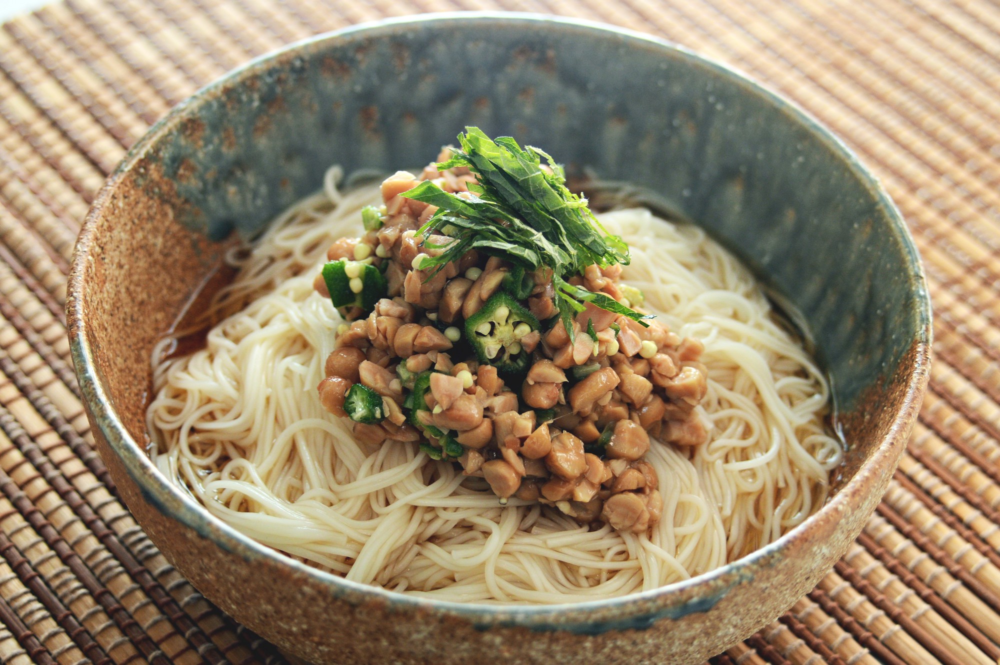 オクラ納豆のネバネバ素麺