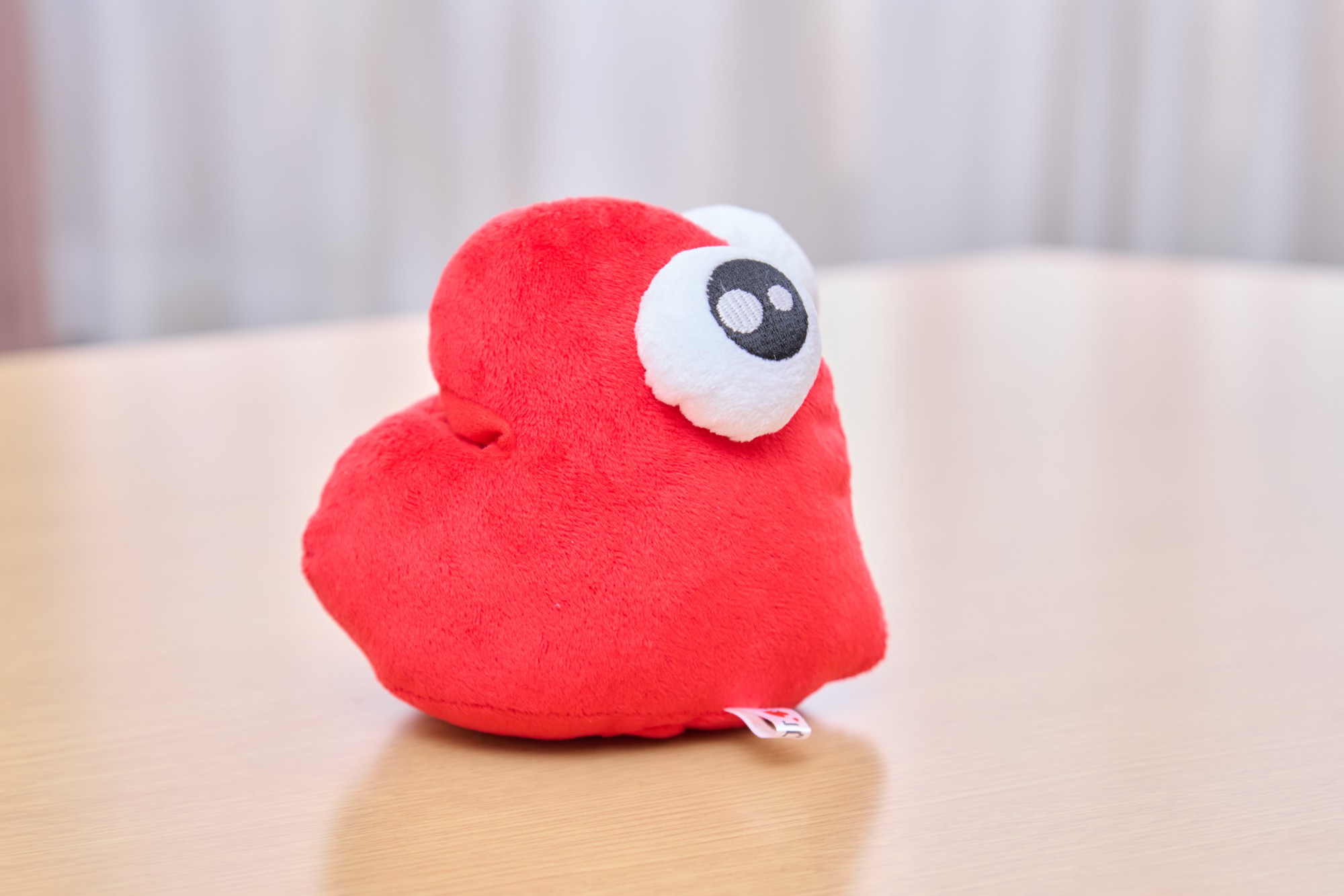 ▲「チュバ」のぬいぐるみ。唇の形をしていて、キスの擬音の「ちゅっ」が名前の由来になっているんだとか