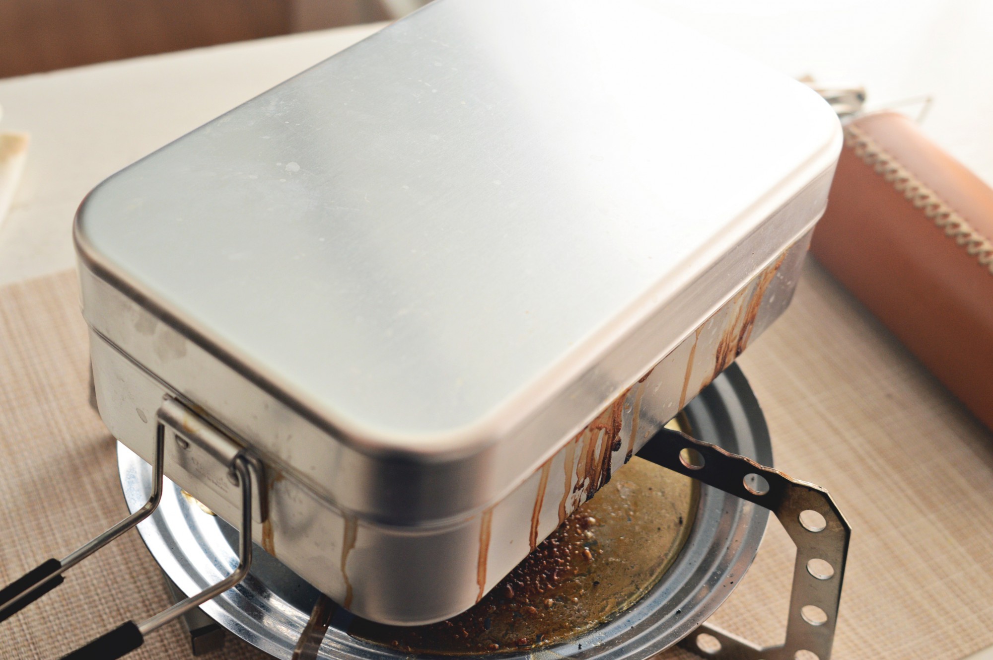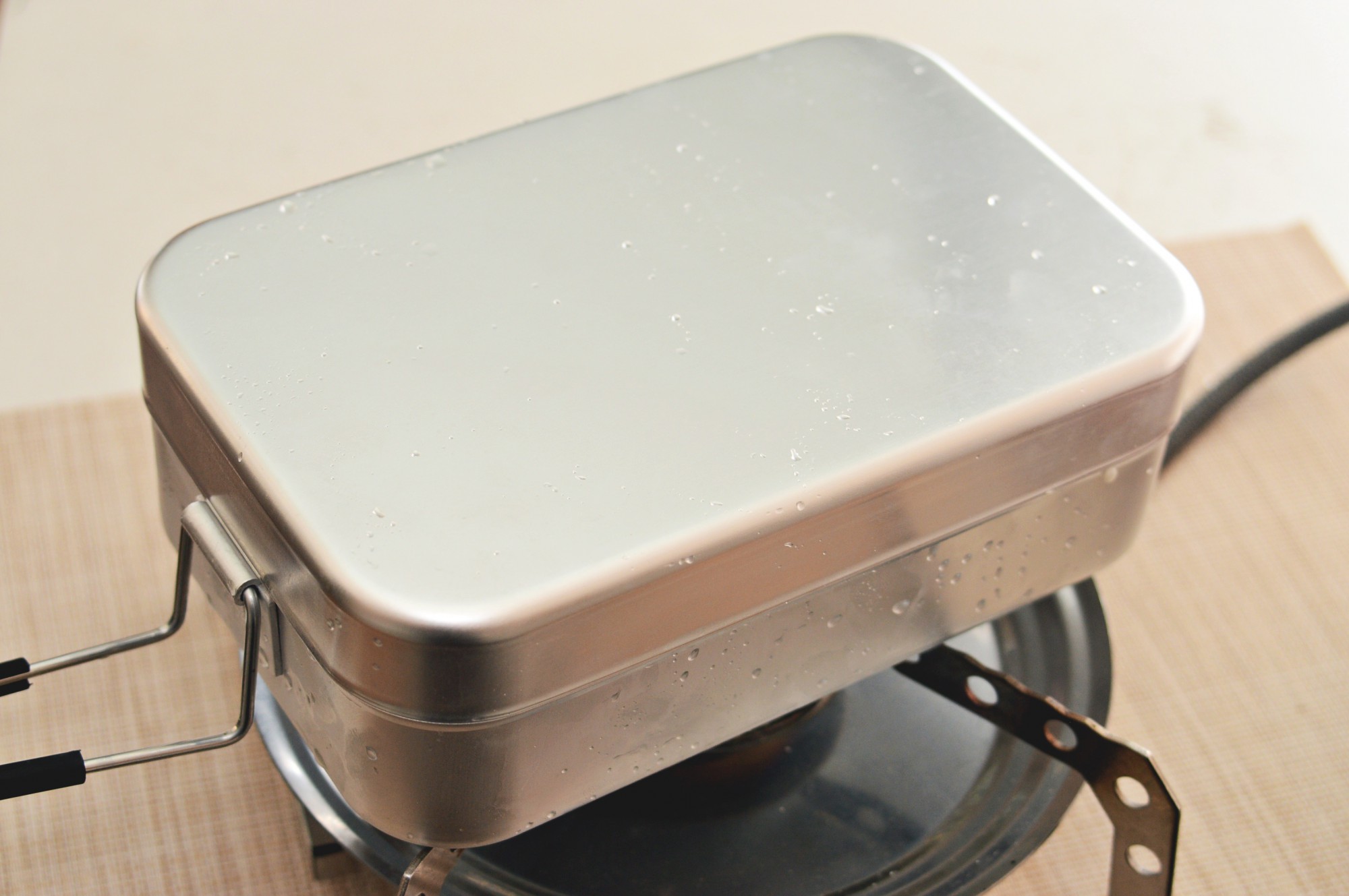 メスティンにフタをし、中火にかけます。メスティンは熱伝導率が高いため、特にたき火などを熱源に調理する際は、ご飯が焦げないよう十分注意しましょう。