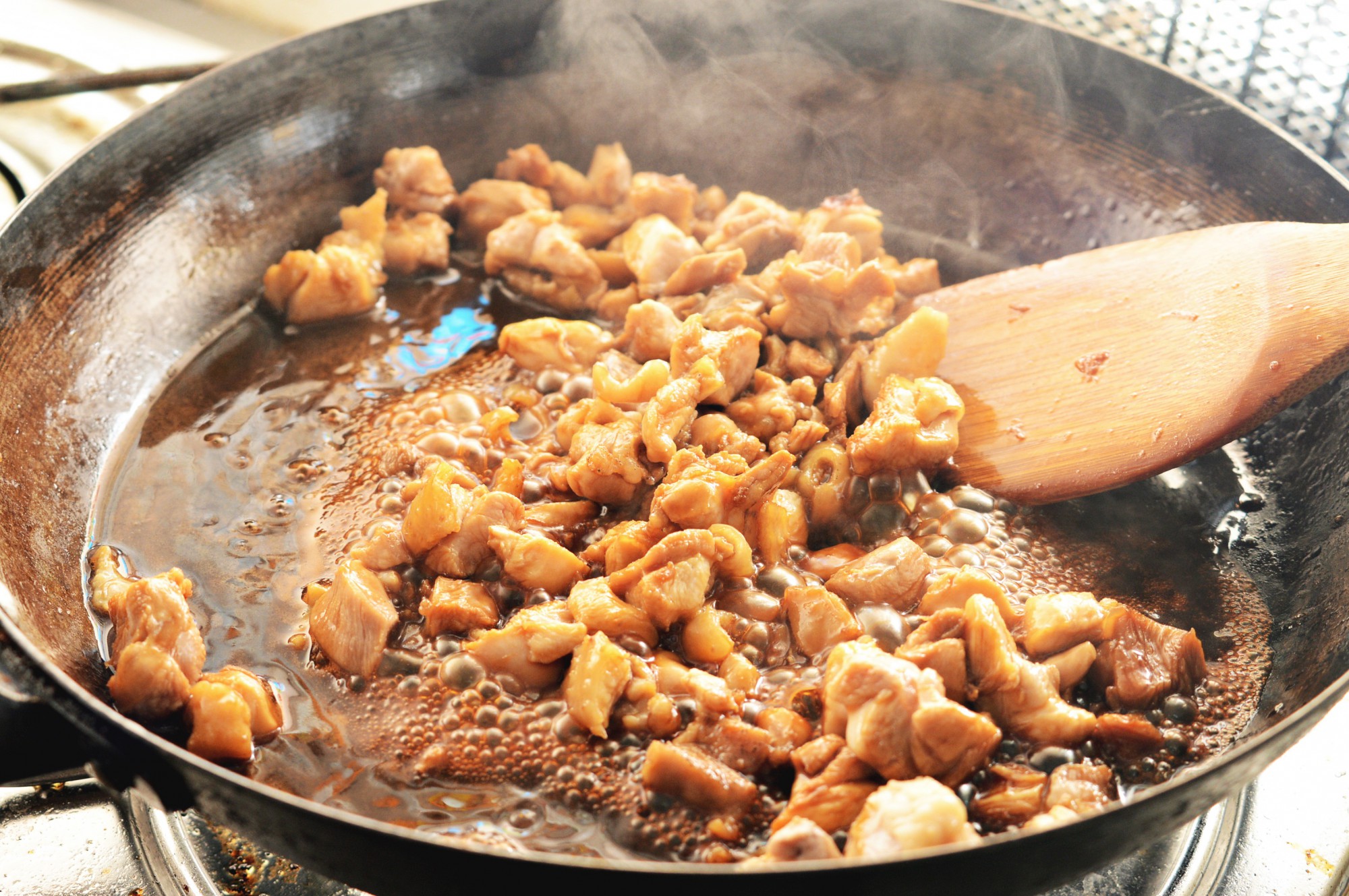 ③鶏肉を炒める