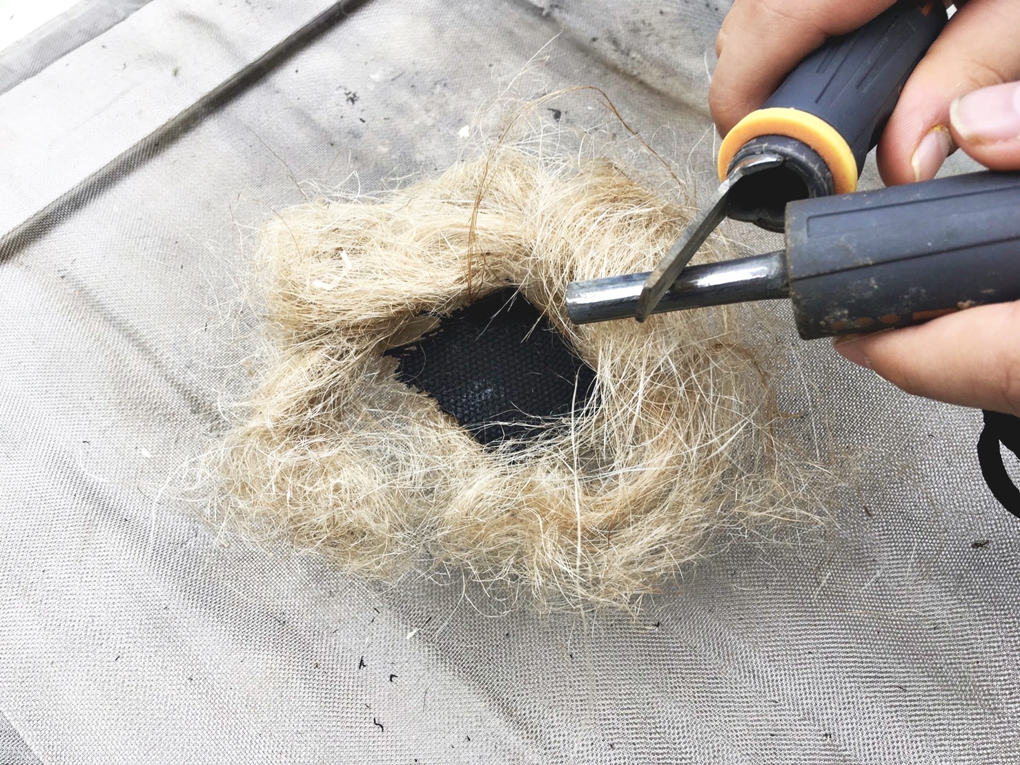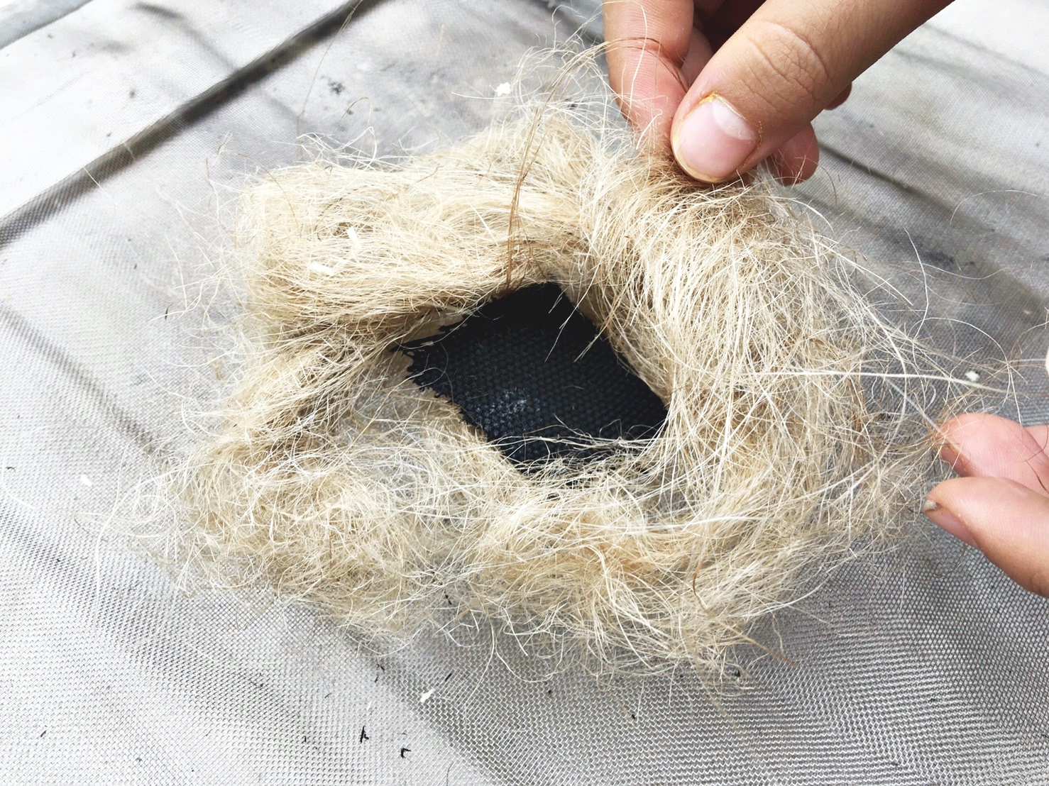 火口は、チャークロスの火種を元に発火させ、最初の炎を作るためのものです。今回のプランではまずファイアースターターでチャークロスに火を付け、着火したチャークロスを火口で包み込み、空気を送って発火させます。