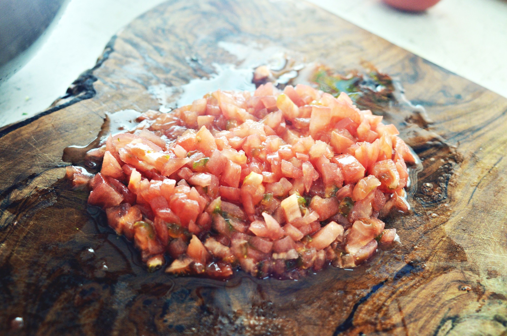 湯剥きしたトマトはキッチンペーパーなどでしっかりと水気を拭き取ってから、みじん切りにします。