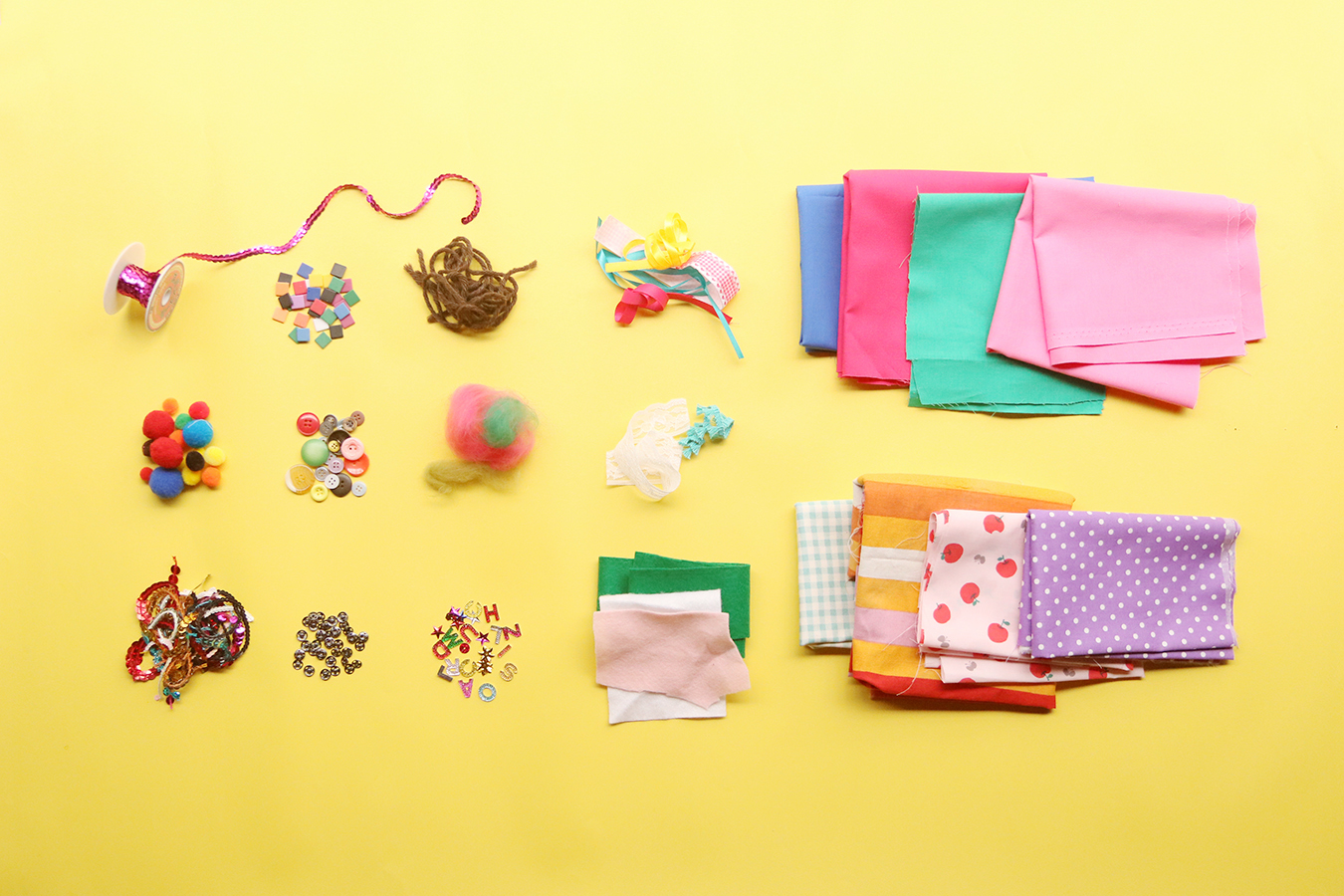 もう着なくなった子ども服、出番がないままストックしている替えボタン、使い切らなかった毛糸などなど、ご家庭で余っているもので十分楽しめます!もし手持ちのものが物足りなかったら、100円ショップへ。