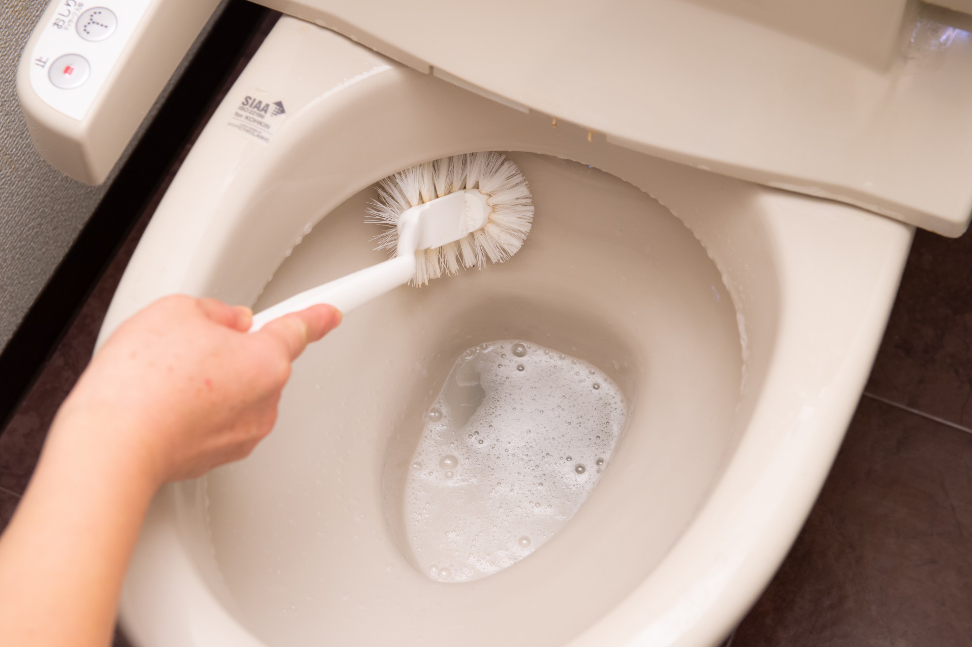 STEP5: 便器のなかのしつこい汚れをブラシでこする!