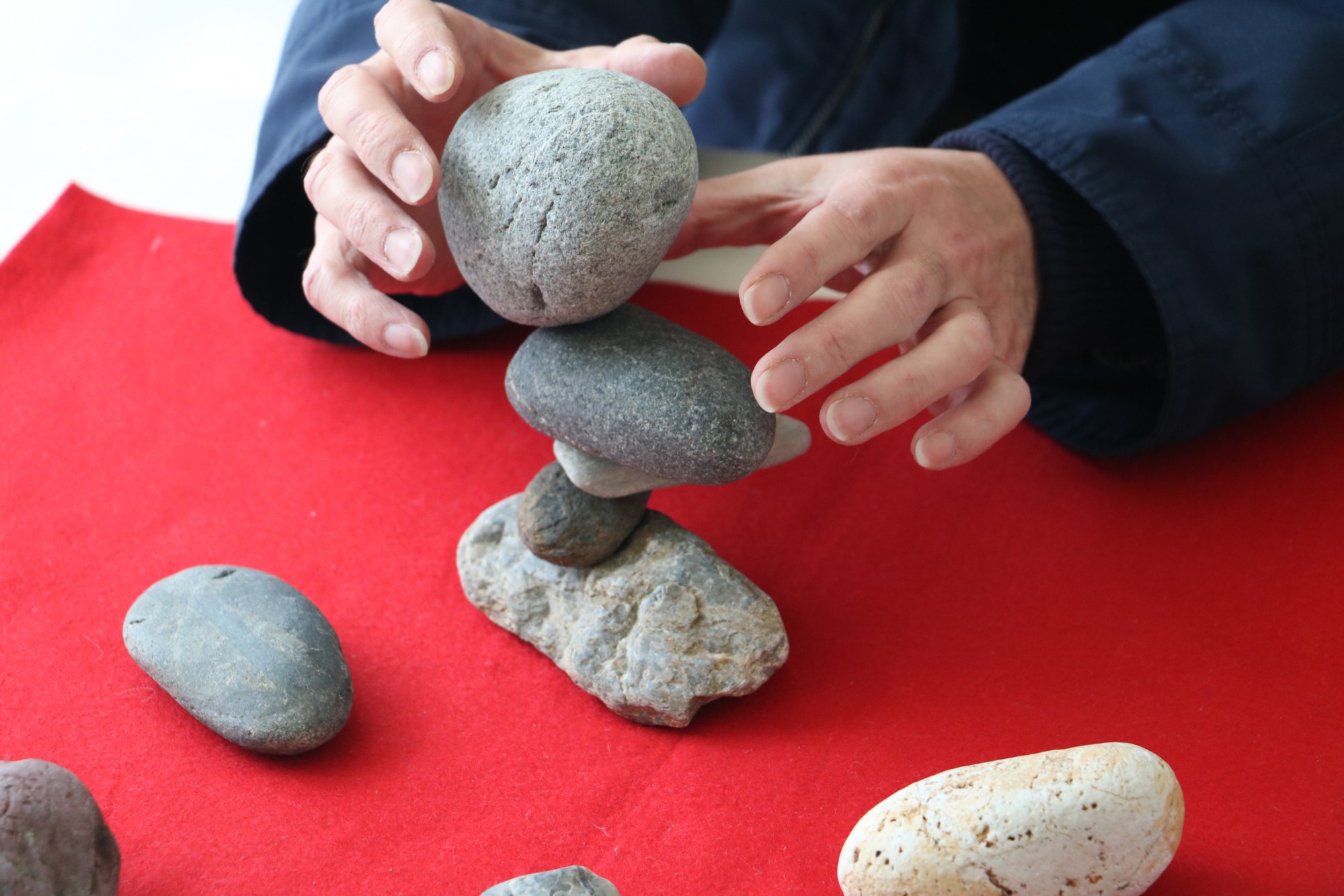 これが実は難しいのです。石自体が軽いので、ちょっとした手の動き、揺れなどがシビアに影響します。でも家でやるには、トライしやすいサイズかもしれません。