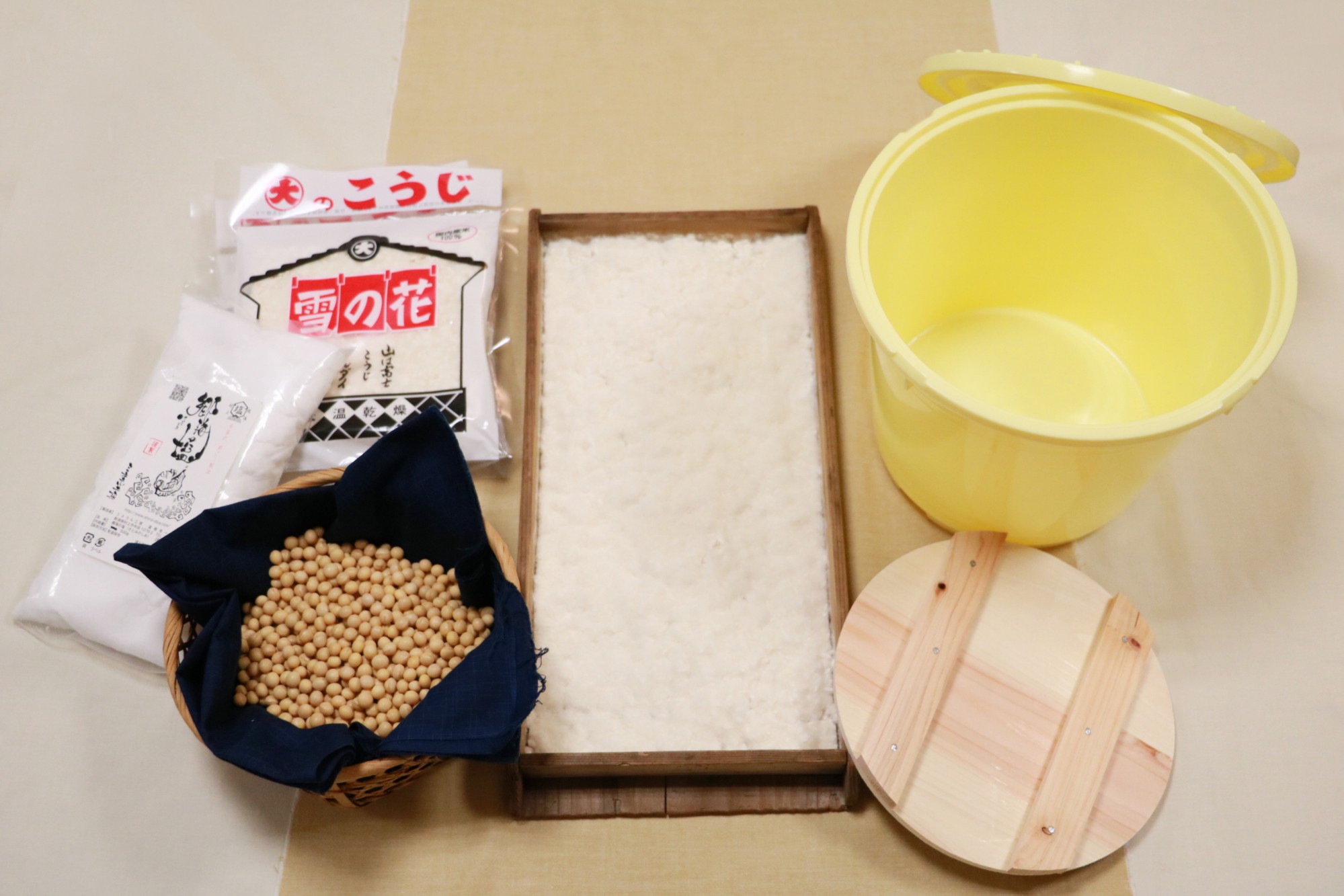 ●乾燥大豆(1kg)、麹(1kg)、塩(500g)、茹で汁(400ml)